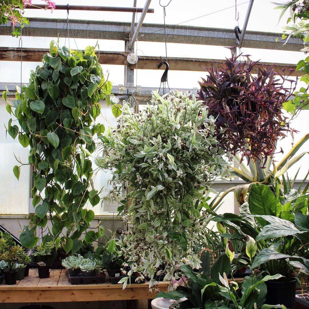 Three impressive hanging baskets: heart-leaf philodendron, variegated wandering Jew (Tradescantia zebrina), and purple heart (Tradescantia pallida) #philodendron #heartleaf #wanderingjew #tradescantia #tradescantiazebrina #purpleheart #tradescantiapallida #houseplants #indoorplants #houseplantsofinstagram #plantsmakepeoplehappy #plantsarefriends #plantlove #plantlife #plantsofinstagram #plantstagram #botanical #botany #greenery #greenthumb #instaplants #foliage #leaflove #leaf #urbanjunglebloggers #jungalowstyle #urbangardenersrepublic