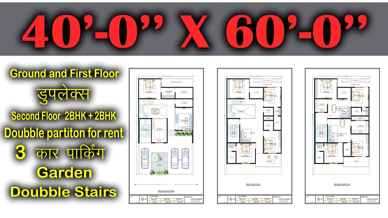 40 x 60 house plan │ 40 x 60 Feet │40 * 60 duplex house design │3 car parking with garden │G+2 Floor