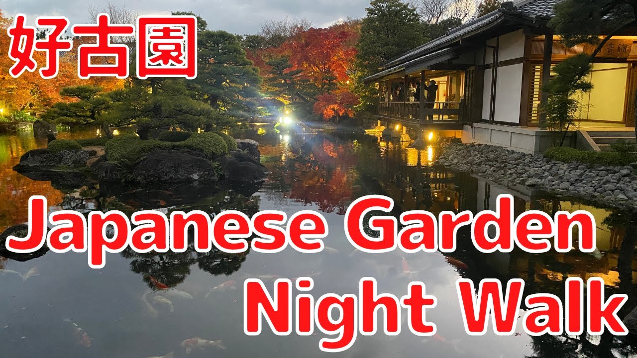 Walked through Majestic Japanese Garden, Koko-en in the Autumn season at night. Please enjoy beautifully illuminated colored maple trees in amazingly gorgeous and specious garden!