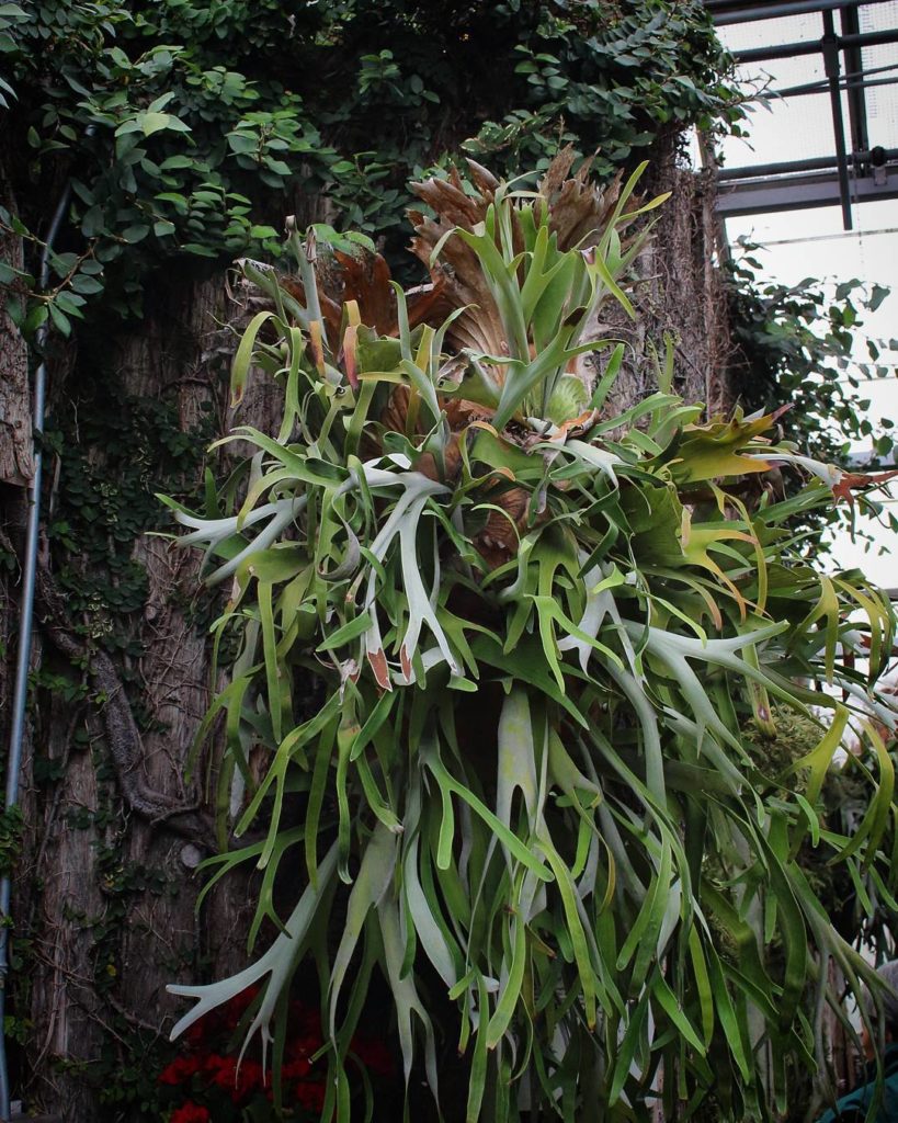 (2/2) At the back of Allan Gardens lives a huge staghorn fern – I love how these mature specimens form a great suspended colony. From a distance, the fronds look like paper cutouts! #staghornfern #platycerium #platyceriumbifurcatum #houseplants #plantlove #plantlife #indoorplants #foliage #plantsofinstagram #plantstagram #plantsmakepeoplehappy #urbanjunglebloggers #jungalowstyle