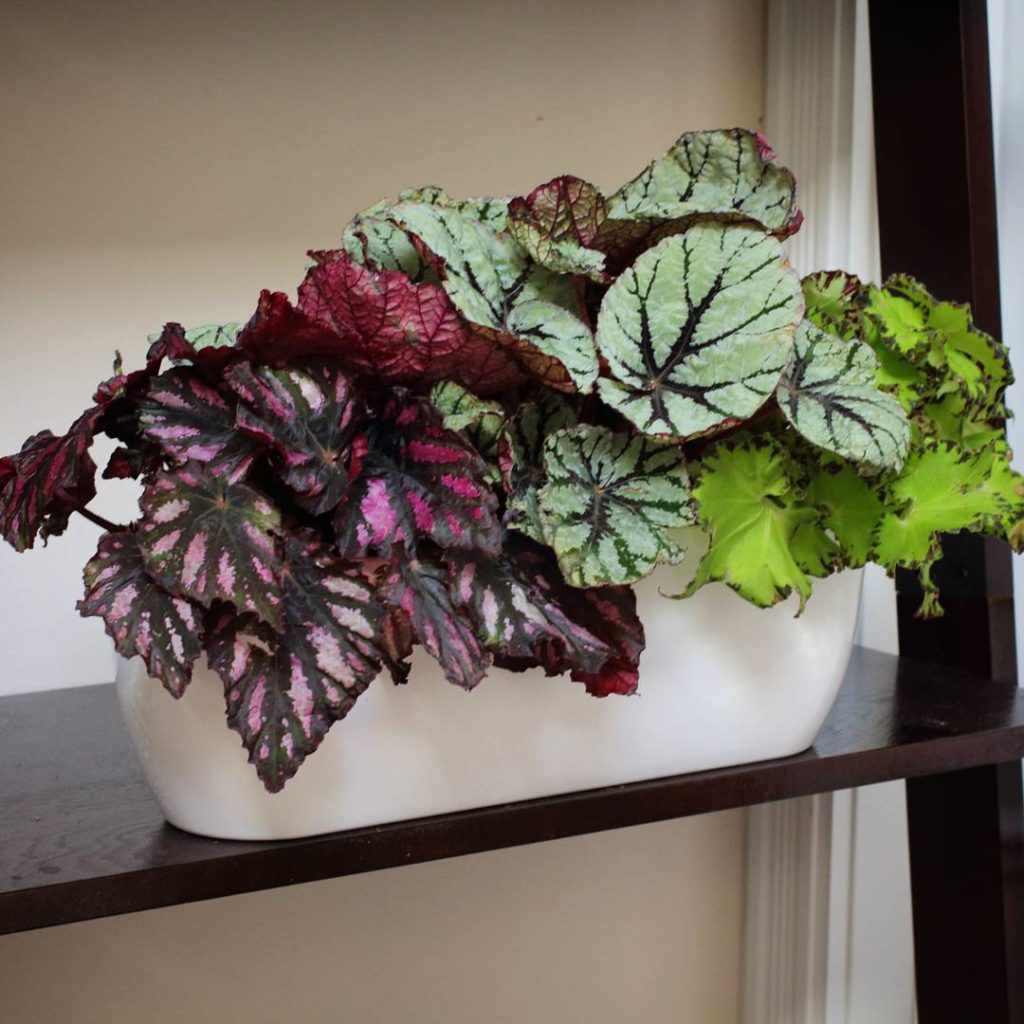 My begonia party tray isn’t quite as impressive as the wall in Singapore but I still like looking at it #houseplants #plantlove #foliage #indoorplants #plantlife #urbanjunglebloggers #begonia #begoniarex #rexbegonia #leaflove #jungalowstyle