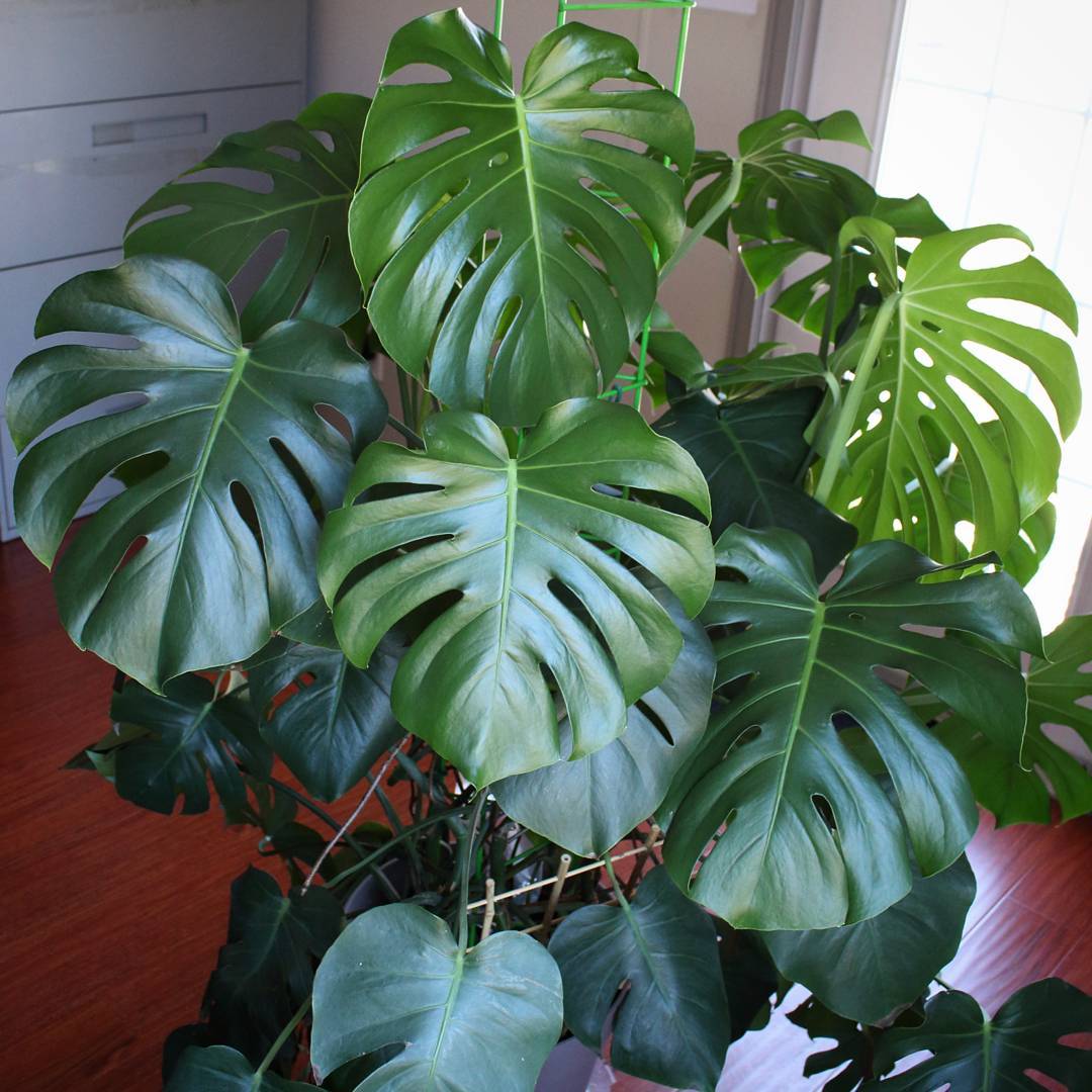 Looking at my monstera deliciosa from the window’s direction, you can see how the leaves have arranged themselves for maximum exposure. The other half of the leaves face the door seen in the top right corner. #houseplants #plantlove #foliage #indoorplants #plantlife #monstera #monsteradeliciosa #leaflove #urbanjunglebloggers #livingpattern