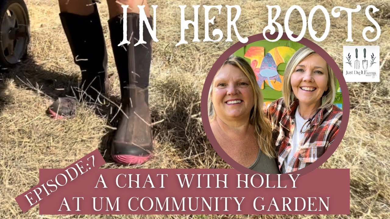 Today in Episode 7 of IN HER BOOTS we are chatting with my best friend Holly at the UM Community Garden. We worked together at Petals From The Past for many years and although our first encounter wasn’t the best a great friendship developed quickly.
