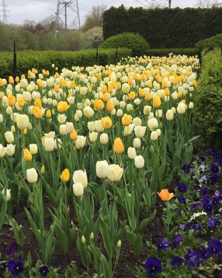 A mass of yellow and white tulips is as cheery as it is striking. Though the bloom time is fleeting, I cannot imagine a spring without tulips. This is a very dressed up and showy spring moment, whether you plant 60 or 600. From @detroitgarden blog. .