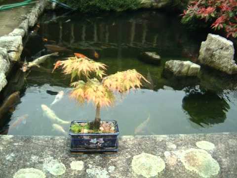japanese garden with koi,bonsai and shaped trees and shrubs