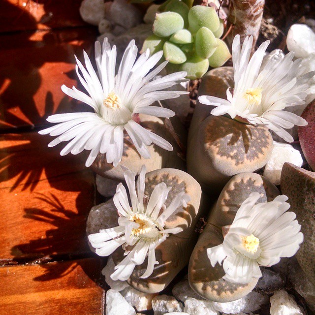 @thehorticult: Synchronized bloomers! Our Lithops plant’s four flowers have been opening and c…