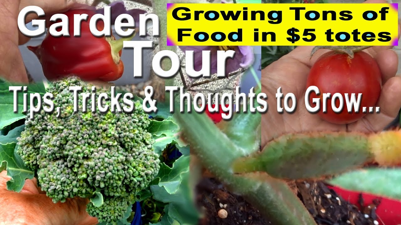Vegetable Garden Tour TIPS Growing Tomatoes Cucumbers, Broccoli, Onions, Lettuce Container Gardening 5452may22