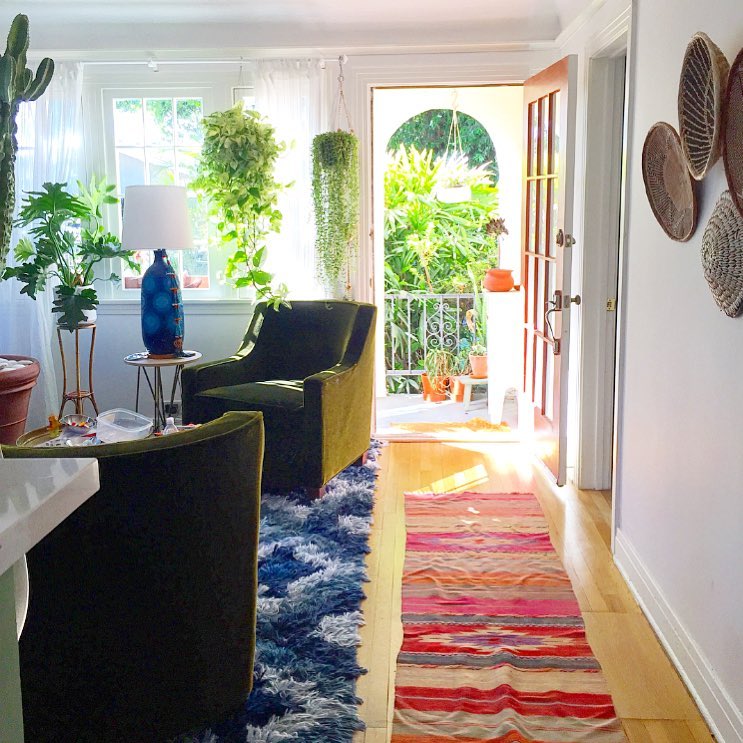 When you need to divide a small space into different areas (like our living room is also the main entrance to our Jungalow) use rugs to visually divide the space. #jungalowstyle #jungalowbytheriver