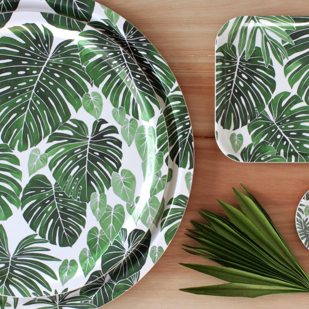 Trays + Coasters are on S A L E!! 🌴 I have limited quantities available of all styles, only a few small rectangle trays left! All handcrafted with certified pressed birchwood then printed with my Tropica jungle pattern, made in Sweden.