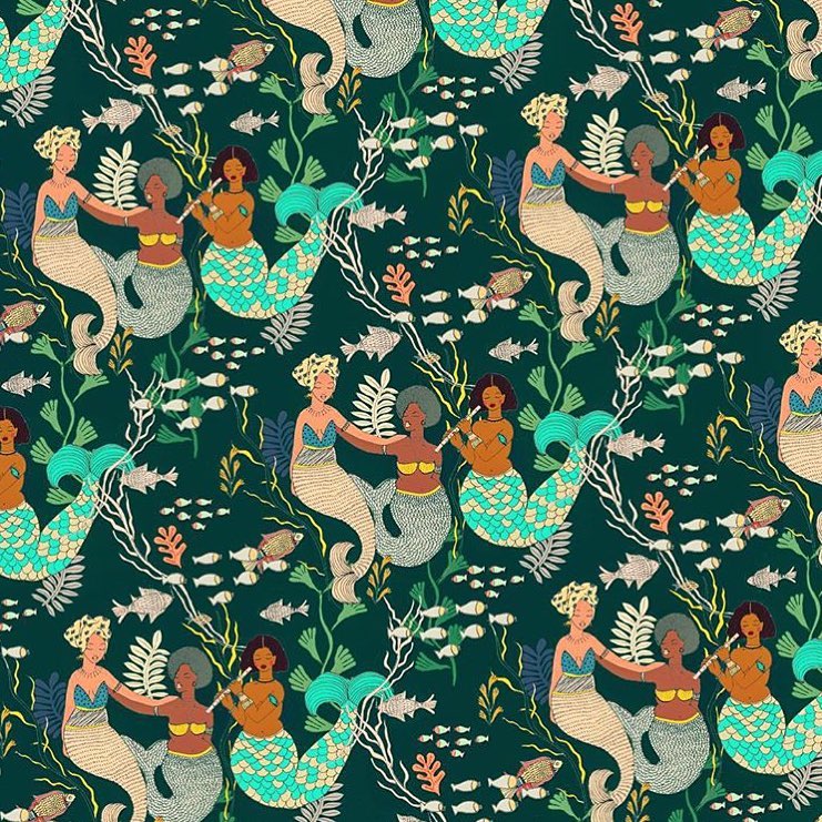 Posting my mermaids here now because I’m feeling like the world needs a little mermaid magic today 💦💙🙏🏾🌊 #patternsbyjustina @justinablakeney #jungalowstyle