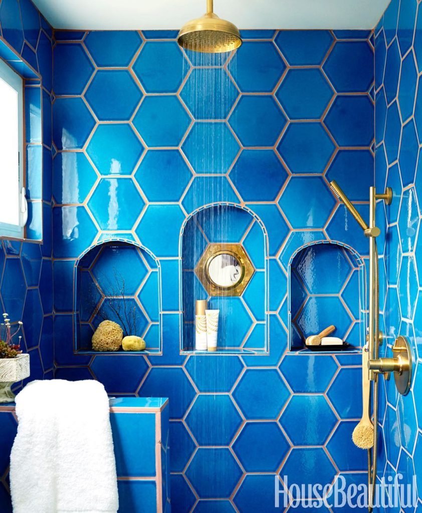 Finishing off the day with our shower remodel in this crazy beautiful @fireclaytile as seen in @housebeautiful (📸 @davidtsay ) #jungalowstyle #bohodecor #bathroomdesign #bathroomdecor #ihavethisthingwithtiles