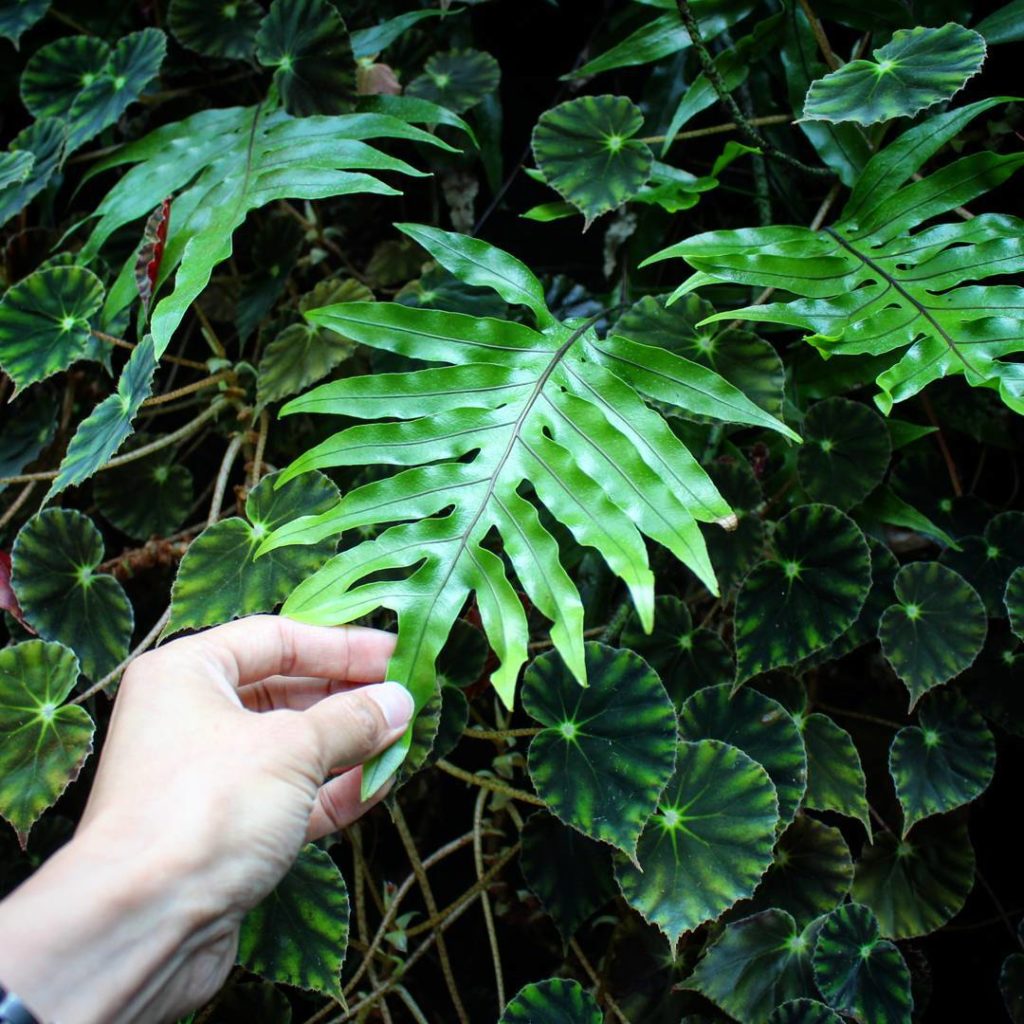 @houseplantjournal: A kangaroo paw fern growing in a wall of begonia ‘tiger kitten’ leaves. The foli…