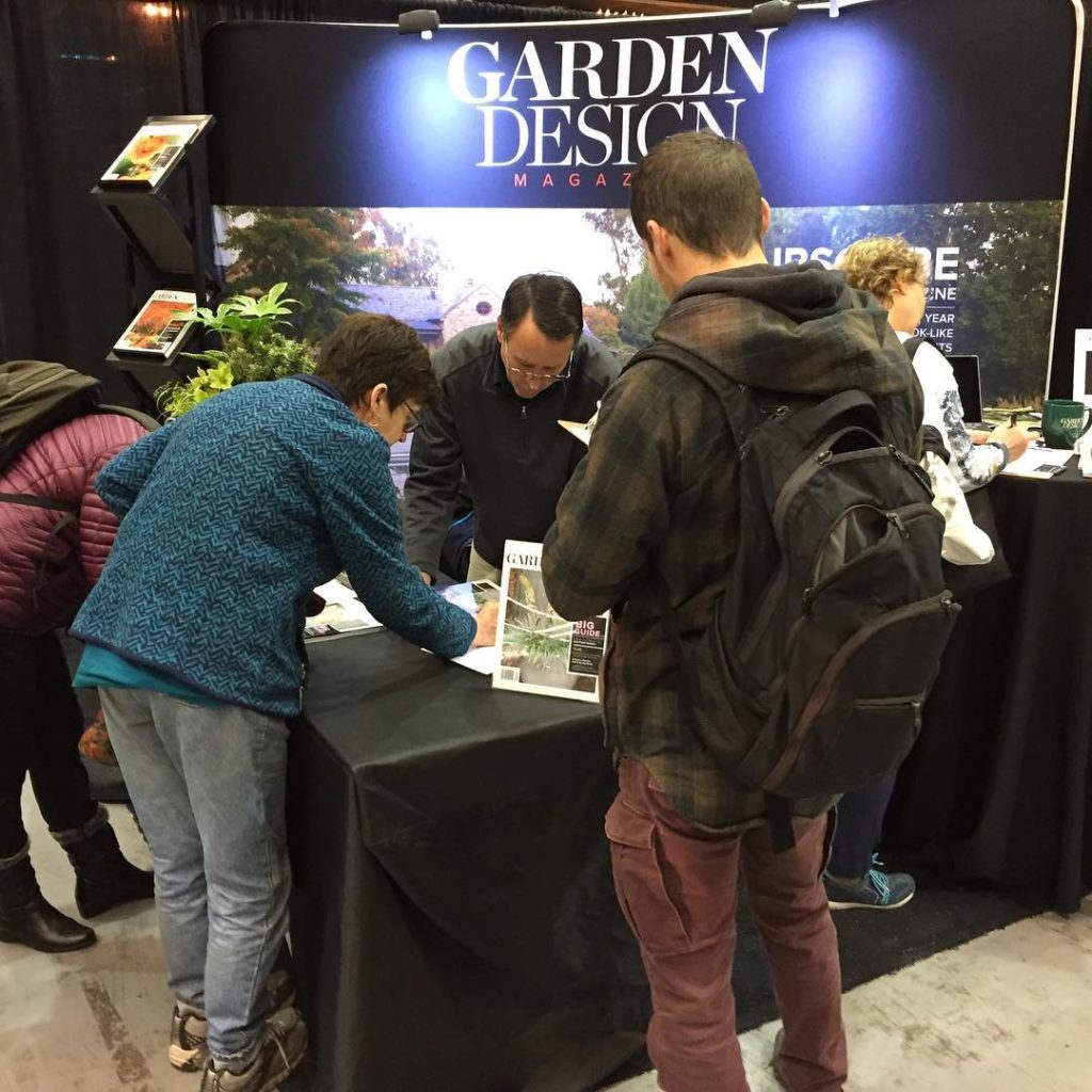 @gardendesignmag: Busy day at the booth at the @nwfgs today. Thanks to all of our new subscribers!…