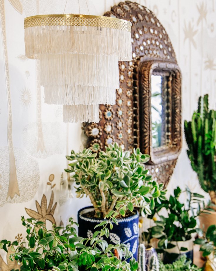 Today on the blog, learn to make this #boho #fringe chandelier inspired by a 1960’s design by #hansagnejakobsson — DIY this pretty statement piece in less than one hour, for under $60! #jungalowstyle #DIY #bohohome #bohodecor (📷 @justinablakeney)