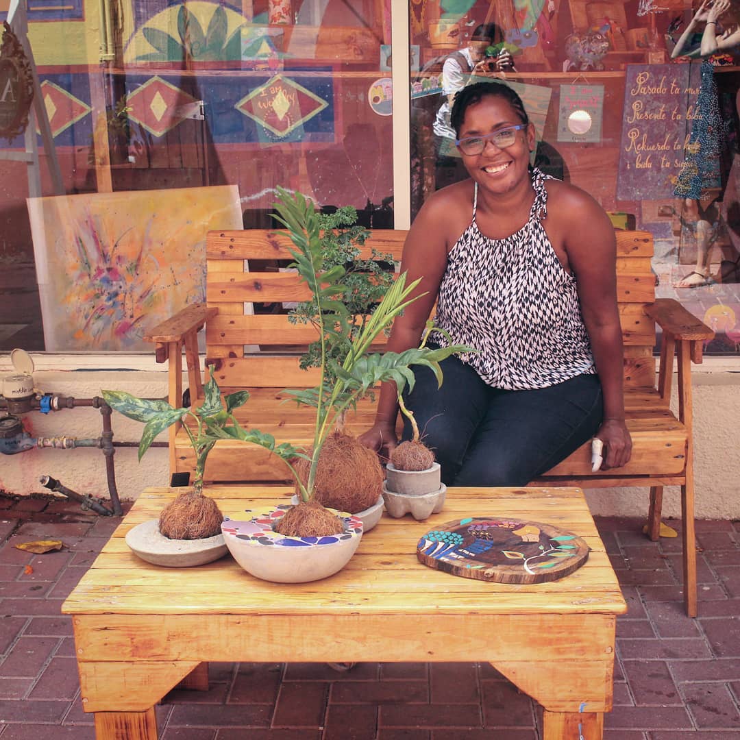 Venturing into downtown Punda, I spotted some charming kokedama on a table in an alleyway. That’s where I met Silvany (@silvanyross), a local maker/shop owner. I got myself a set of her handmande concrete kokedama holders – couldn’t buy the uniquely shaped bamboo plant (cross border issues) but Silvany explained how she “made” it: “one day I accidentally knocked it over onto its side and just never bothered to put it back up – it eventually turned out like this.” Pay her a visit when you’re in Willemstad, Curaçao!