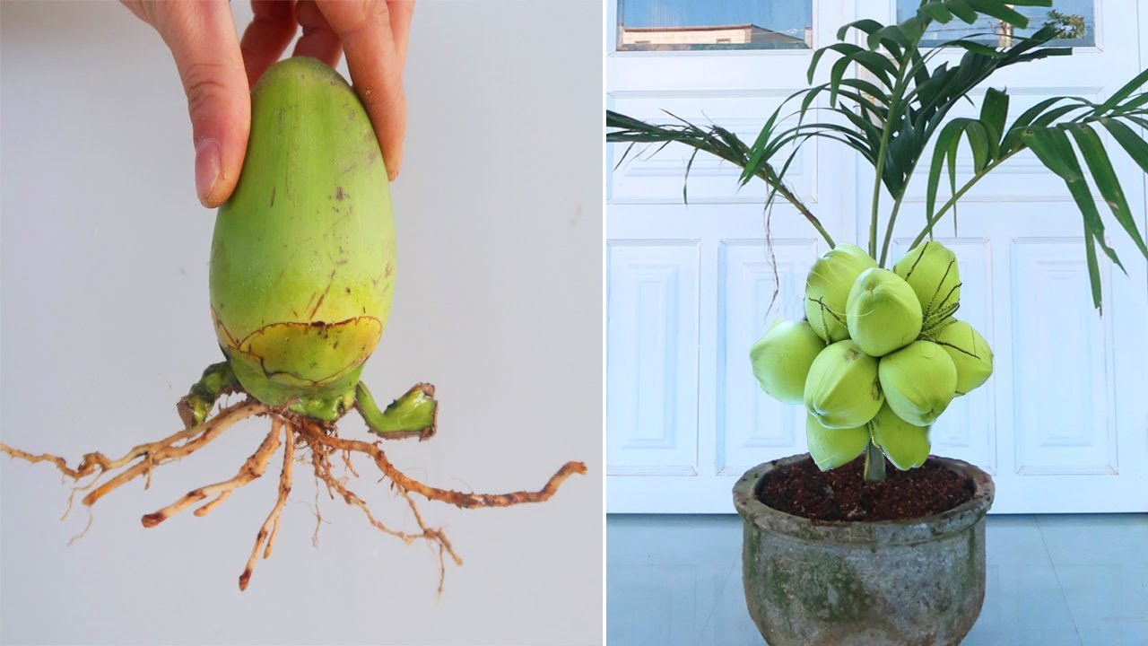 É só colocar um coco seco na sombra ,ele solta raiz e broto.