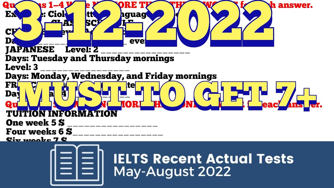 Ielts listening practice test 2022 with answers, recent actual practice test | CLASS SCHEDULE