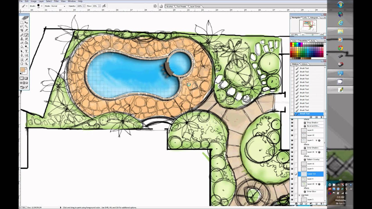 this is a short clip on how you can produce your landscape sketches quickly using a Wacom Cintiq 24HD, this was a villa garden design done in few hours, stay tuned for the next video…. Garden Designjeddahlandscape architecturewacom cintiq 24hd 5 Comments emfadul 13 years ago Wow too fast. Masha Allah nice work. mrd00772 13 years ago Nice…i think u should pause so we can see the end product… nca777 13 years ago Nice. I thought I was the only one designing digitally. I am still using an intuos 5 but considering buying a cintiq for my studio. Madani Zakri 12 years ago Brilliant Ma sha allah Matias Sanchez 10 years ago awful design but superhuman skill in the drawing. Write A CommentYou must be logged in to post a comment.