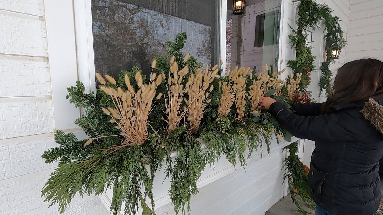 A white window box decorated for Christmas with evergreen bows, rose hips, seeded eucalyptus, and gourds is a beautiful and festive way to add a touch of holiday cheer to any outdoor space. The white window box, with its clean and simple design, provides a crisp and modern backdrop for the colorful and seasonal plants and decorations.