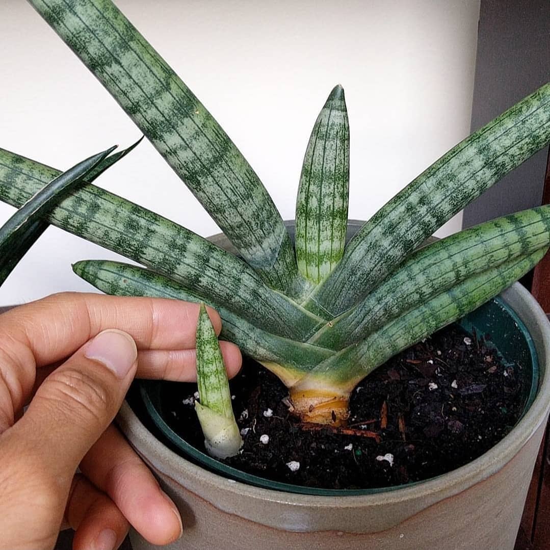Appreciating new growth on my Starfish Sansevieria – (📷 2) one year ago, the baby was but a single sprout! Happy #sansevieriasunday 🐍🌿