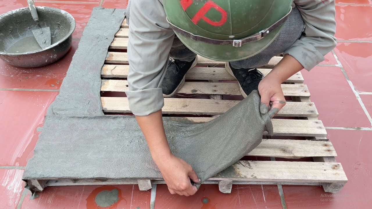 Build a 2-storey waterfall at home from wooden pallet and cement