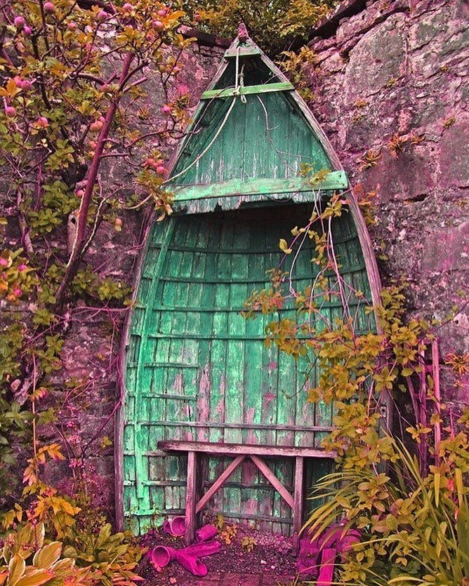 #garden #gardennook #gardening #boat #repurposed #gardenlovers #gardeninspiration #autumn #gardenart