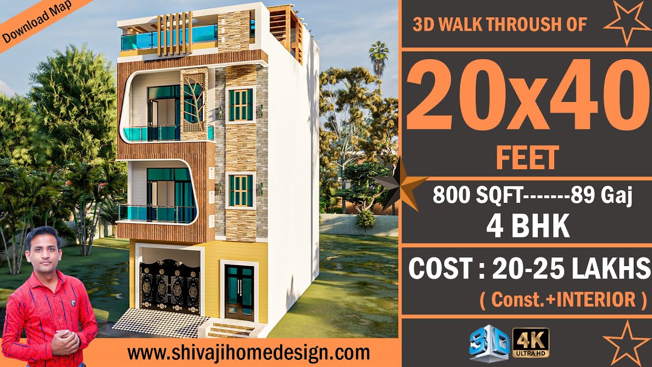 20*40 House Design 3D | 800Sqft | 89Gaj | 4 BHK | Modern Design | Terrace Garden |