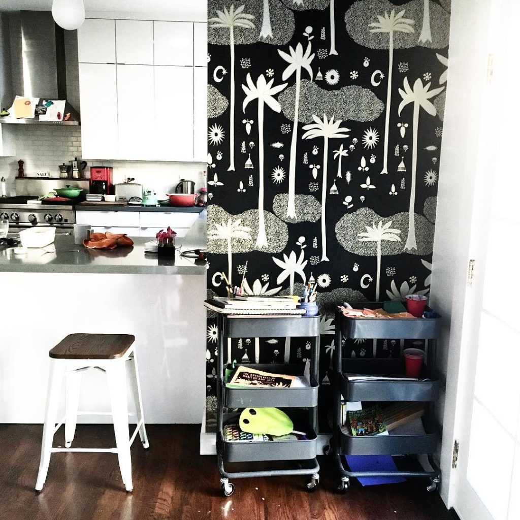@thejungalow: Sometimes, all a kitchen needs is a little pop of #cosmicdesertwallpaper — phot…