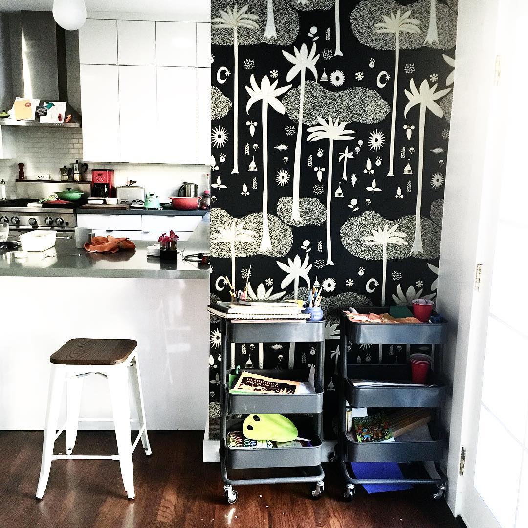 Sometimes, all a kitchen needs is a little pop of #cosmicdesertwallpaper — photo from my favorite interior designer: my sister @faithblakeney. 👯 wallpaper available at @hyggeandwest. #justinaxhyggeandwest #jungalowstyle