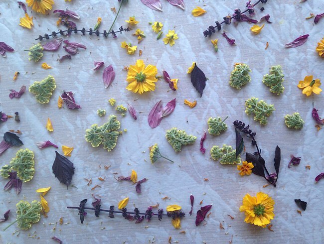 Pictured: Just-harvested flowers are laid out on wet fabric as part of the dyeing process. Photo by: Jonny Thomas for @pinehouseediblegardens