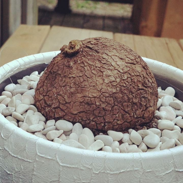 Thanks for your votes on the pot color for my Stephania venosa. I think the usual pot that’s paired with a caudex is a dark terracotta or charcoal color so I suppose people wanted to see it in a different style. Until some foliage grows, I’ll just photograph it in front of some showy calatheas