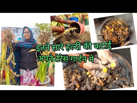 aaj Mai apne terrace garden me haldi ki Harvesting kr rhi hoon..