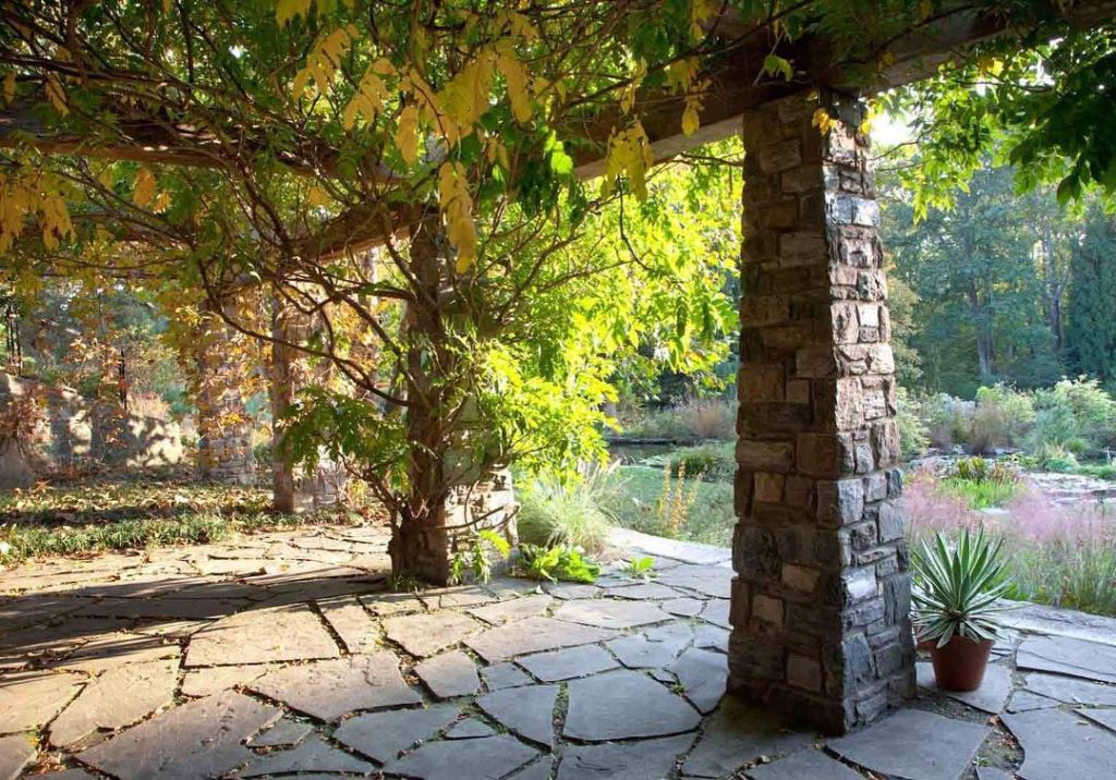 The Pond Arbor frames views of the Pond Garden at @chanticleergarden Image courtesy of Chanticleer, taken by Lisa Roper.