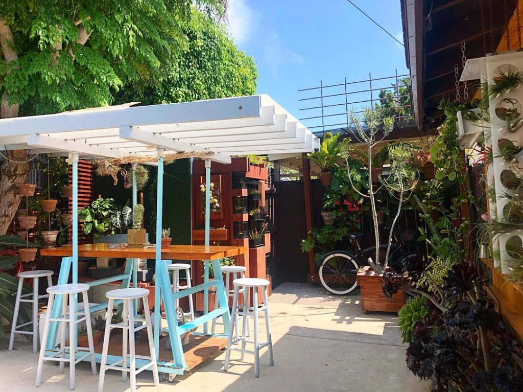 Another sunny day at Horticult HQ 🌞🌿🌵This rolling arbor is built of two industrial stepladders connected with steel channel at the bottom and wood framing up top with acrylic sheeting for bright diffused light. It’s riding on 8 hidden wheels so it can be moved and turned on the concrete slab ⚒🌿. #arbor #rollingarbor #rollingpergola #pergola #thehorticultgarden #ryanbenoitdesign