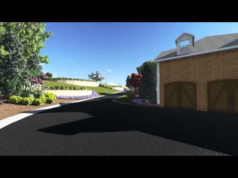A fly through of a proposed driveway, complete with plantings, terrace walls and formal entry. The garden just off the parking court is a memorial garden designed for reflection, peace and serenity.