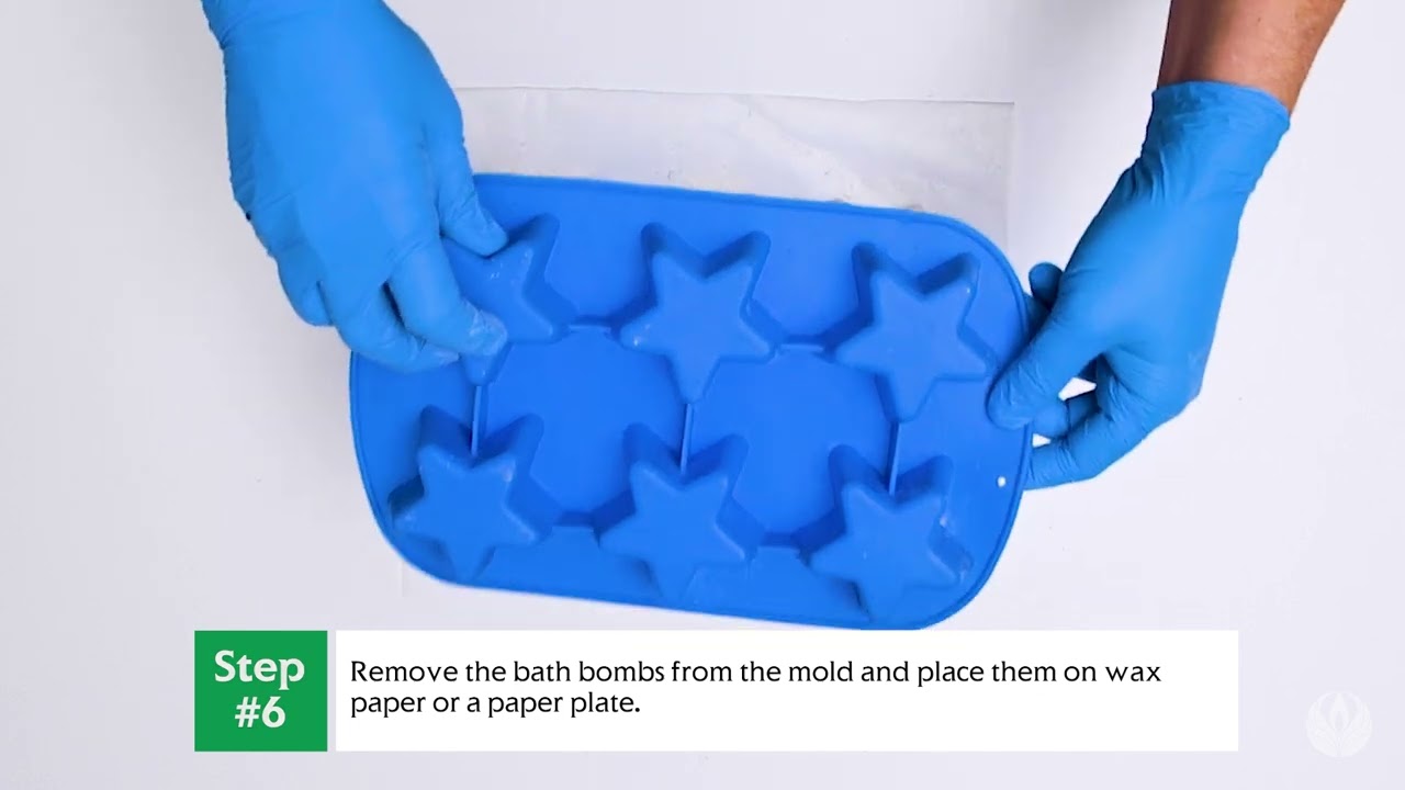 Remove the bath bombs from the mold and place them on wax paper or a paper plate.