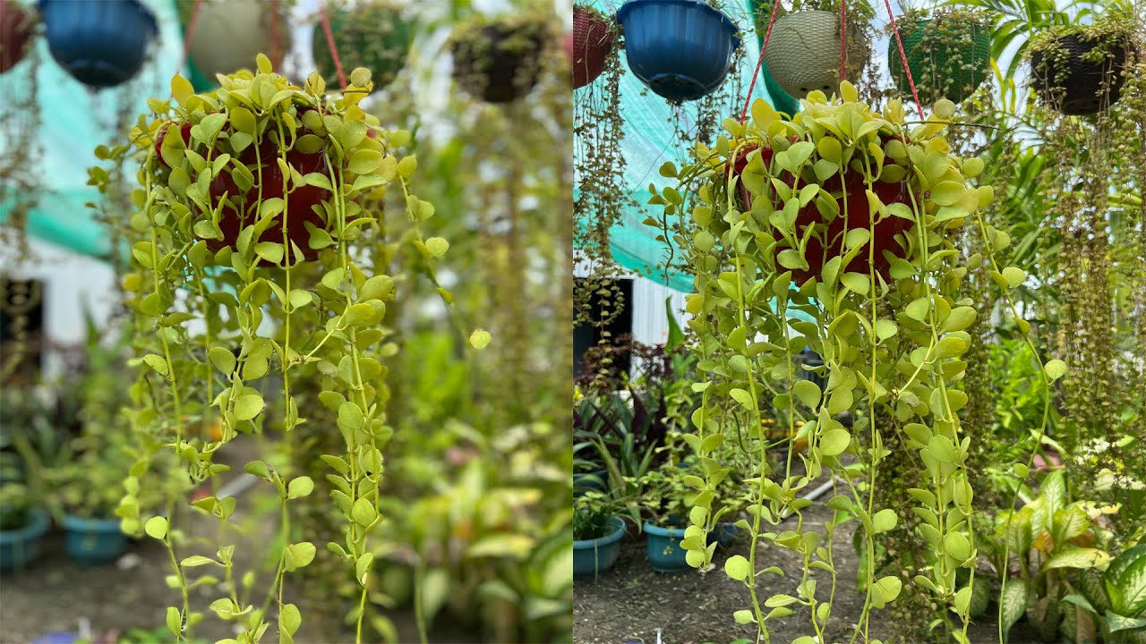 This is an easy way to grow Dischidia nummularia in soil in hanging pot.