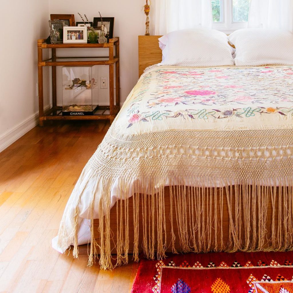 Today on the blog we’re exploring piano shawls with Jungalow contributor @little_nicki_ . There are so many ways to use them to decorate and werk that fringe, yes!?! This one makes a lovely bed spread from the home of @stellaalberti in #TheNewBohoBook (📷 @Dabito) #Jungalow 🌿