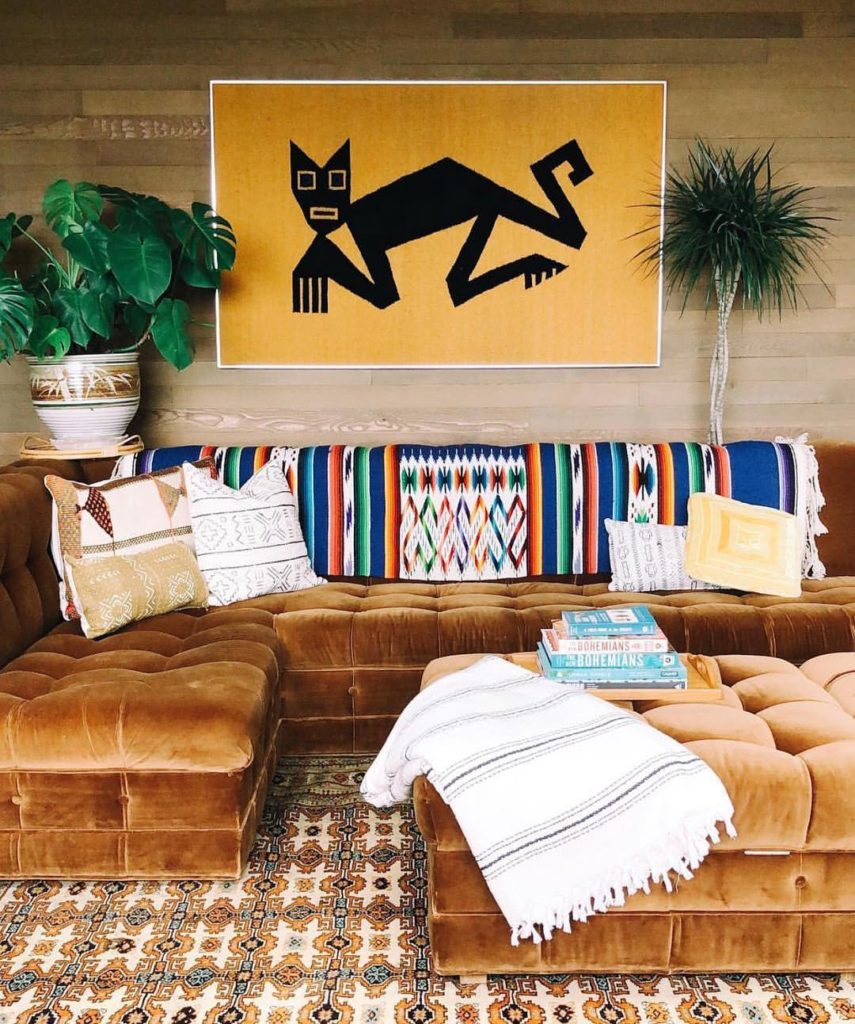 Regram from the talented @6thanddetroit — loving on all the velvet, that fun retro 🐈 art, the gorgeous dracaena and philodendron and all those awesome textiles, and last (but most certainly not least) some seriously great books 😆 🙏🏽🤗
