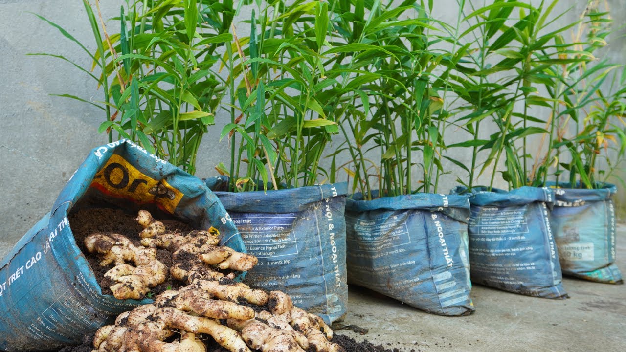 Too easy with the way to recycle old bags to grow ginger at home for many tubers