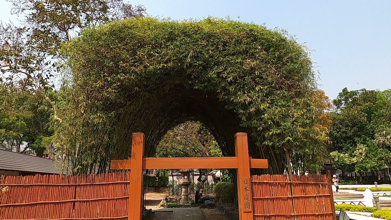 Beautiful bamboo arch, entrance to the Japanese garden.
