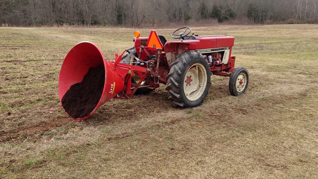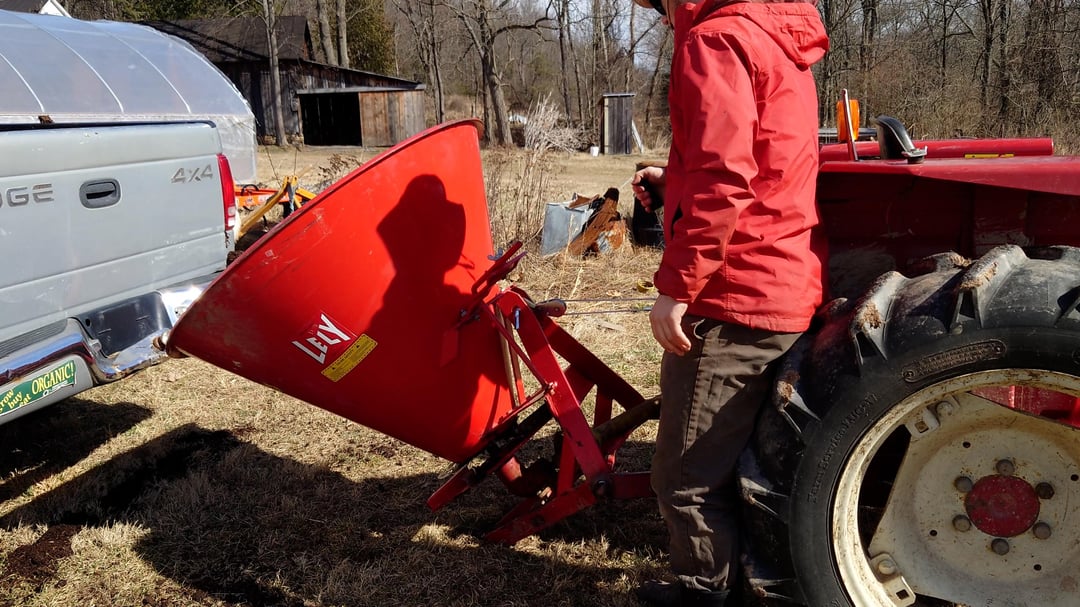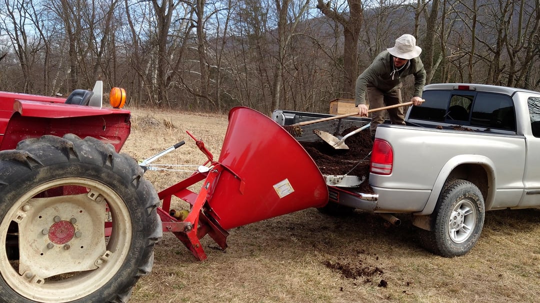 Cant find a manure spreader for a reasonable price so I spent $24 at harbor freight to convert my free spreader into a dump trailer. I used a 2-ton winch to replace my tractors toplink and can now raise and lower it fairly easy and spread my mushroom compost. Here are some pics in action