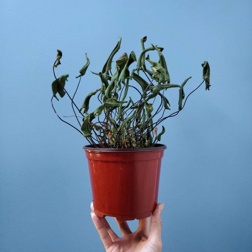 My poor Heart Fern (Hemionitis arifolia) – #plantfailfriday – I just couldn’t keep up with the rapid water usage and the requirement of evenly moist soil. Eventually, the leaves remained in their curled state, unwiling to rehydrate. Discouraged, I left the plant for dead – it sat in a corner for MONTHS as I was planning to discard it come spring time. However, just yesterday, I noticed a living leaf! Sure enough, at the soil level, I found several new leaves emerging among the crispy dead stems. Perhaps this fern is hardier than I first thought! After clearing away the dead stems, I’m now eagerly awaiting whatever new stems this fern has in store! I don’t expect it to grow in as densely as from the nursery but I think this will be a fern with character!