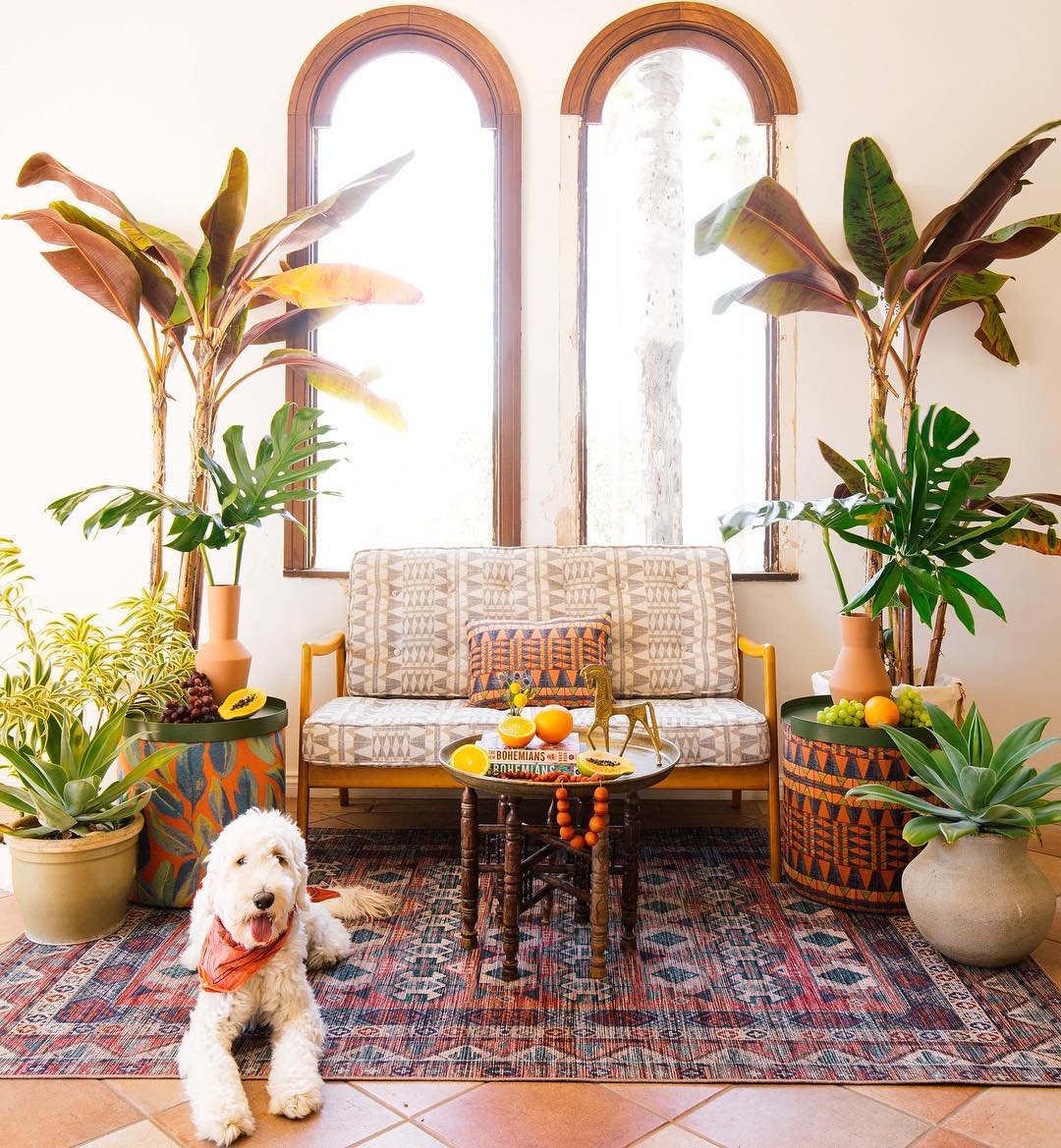 Our motto, ”Decorate Wild!” has as much to do with color, pattern and plants as it has to do with creating a home where you can FEEL wild. Our brand new @insideoutperformancefabrics are stain resistant, fade resistant, mildew resistant AND uses a fluorine-free eco-friendly technology to ensure performance—indoors and outdoors. So go ahead and get wild on the sofa in your wet bathing suit with your dog and a glass of red wine. We have some gorgeous new designs dropping soon at @calicocorners so keep your 👀 peeled! 🌿🐶🌞#jungalowbyjustinablakeney #justinaxvaldese #patternsbyjustina #jungalow #bohodecor #bohostyle (photo: @dabito, model: @dollypartondoodle creative direction: @justinablakeney)