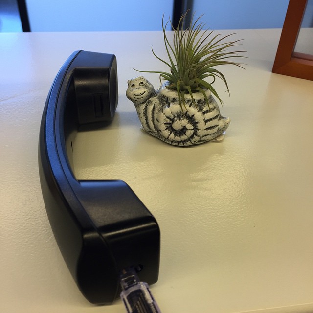Ever wonder who answers the phone at Garden Design? Meet Pokey! He may be slow, but he sure is sharp! #pokeythesnail #airplant #customerservice #gardendesign #smoothoperator #hello