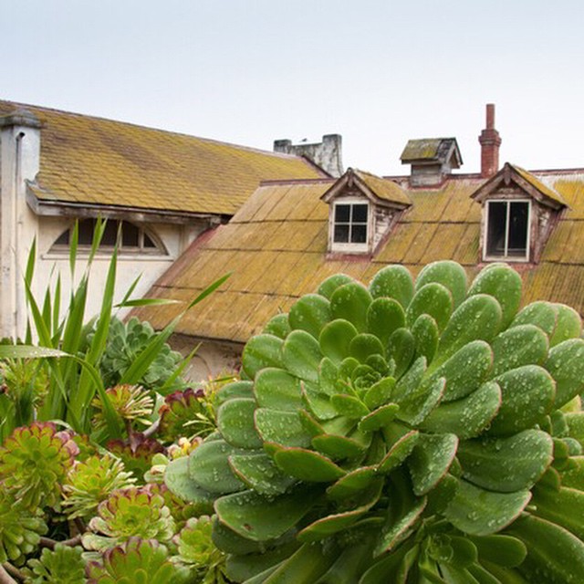 Many succulents, such as the Aeonium seen here, have been able to thrive despite the challenging environment on Alcatraz. More than 200 species of ornamental plants survive the harsh growing conditions. Photo by Elizabeth Byers. #GardenDesign #succulents #gardensofalcatraz #succolove #gardeninspiration