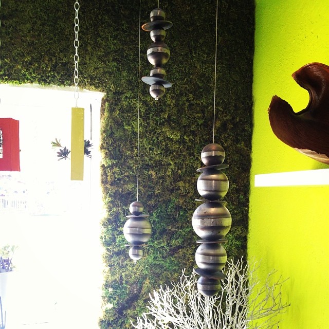 Moss wall at Figg Studios in Palm Springs, CA #gardendesign #mosswall #hanginggarden #metalart #mod #figgstudios #green #verticalgarden #palmsprings #art #design
