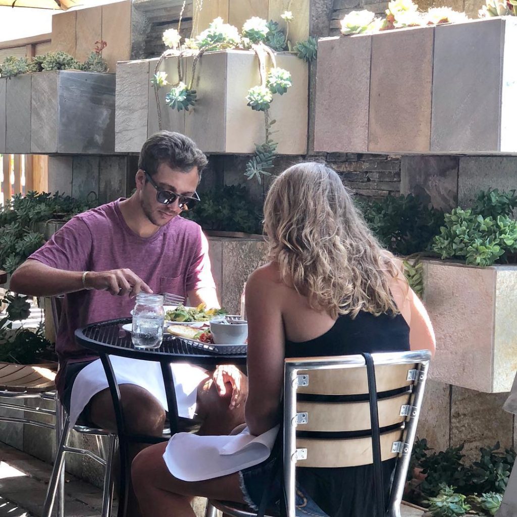 Outdoor dining spot at @clairesoncedros Tile faced succulent containers provide a cozy little spot to enjoy breakfast