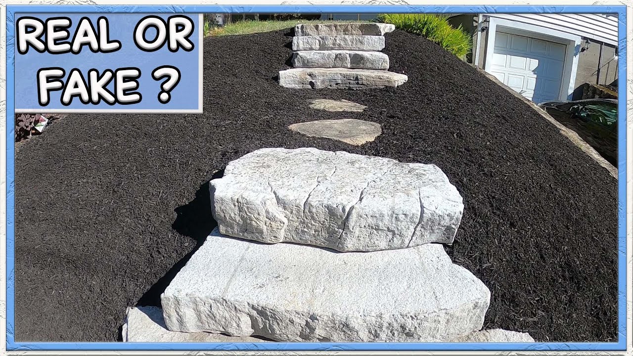 – The Faux Stone concrete steps we used are manufactured by (Nicolock) and are called (Irregular Steps) with the color tone of (York Brown).