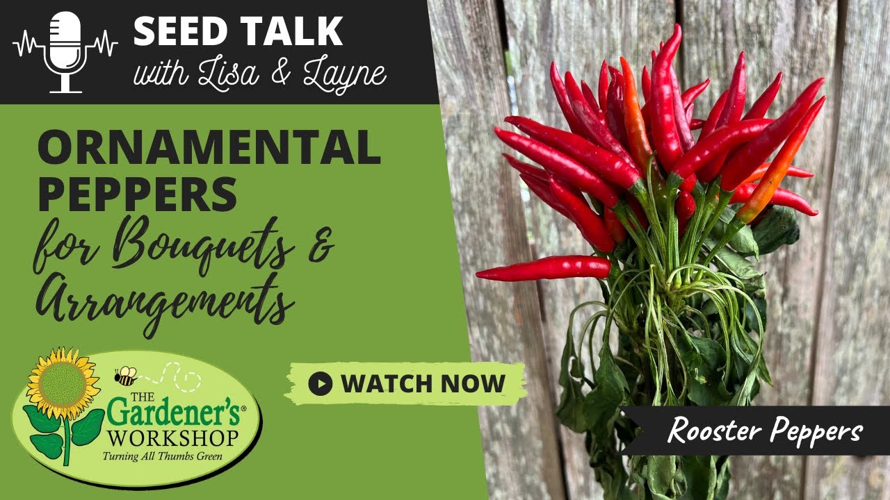 Have you ever considered including ornamental peppers in your bouquets or wreaths? Today, Lisa and Layne discuss rooster peppers, the perfect peppers to grow for cut-flower use. They cover why rooster peppers are sought after by flower farmers, how many plants to grow and how to space them, the harvest stage for fresh and dried use, how to dry the peppers, and ideas for incorporating them into your bouquets and other arrangements. Listen to the podcast and learn how to spice up your bouquets with rooster peppers!